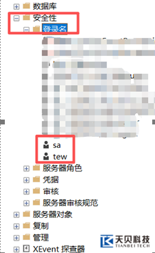 l 连接后,依次展开【安全性】→【登录名】