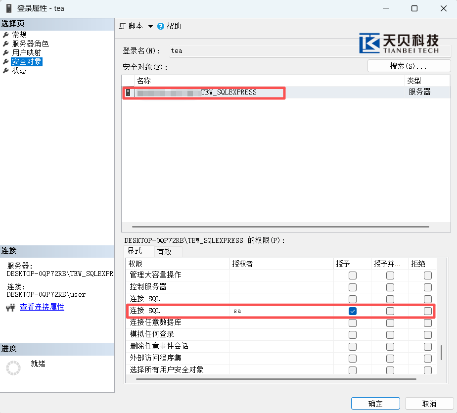 l 服务器名称:TEW_SQLEXPRESS