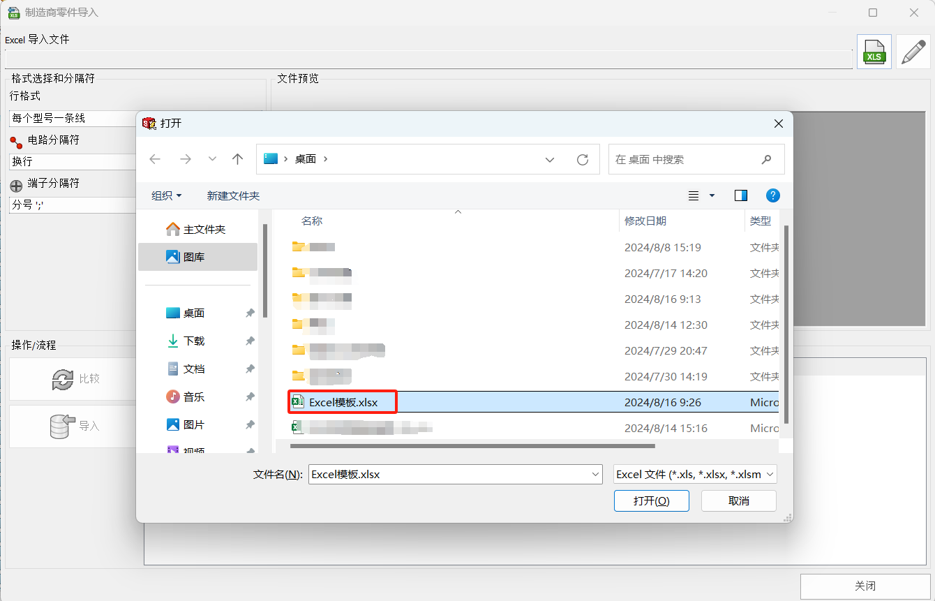 打开数据库->设备型号管理器,点击导入->导入Excel文件: