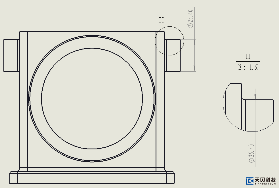 最近,许多人被如何在SOLIDWORKS工程图的局部视图中标记直径这个问题困扰。通常,局部视图是放大视图,只能显示圆的一部分,不好去标注。如图: