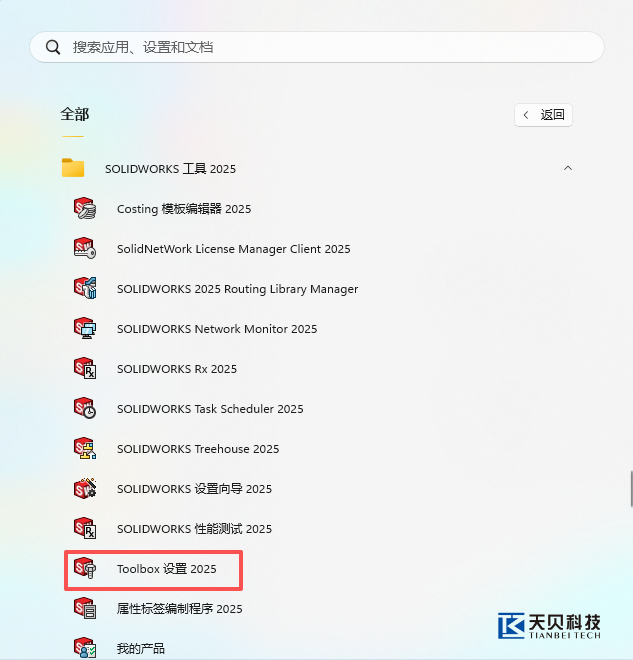 1,在 Windows 系统中,点击“开始”菜单,找到并进入“SOLIDWORKS工具”文件夹,从中选择并运行“Toolbox 设置”。