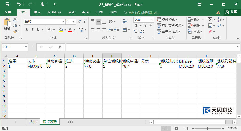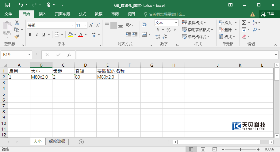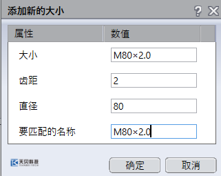 4,选择“+”号,添加尺寸规格参数及螺纹数据。