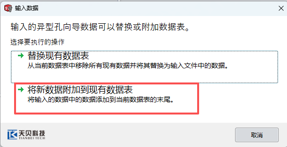5.2,点击“输入孔数据表”,选择“将新数据附加到现有数据表”,表格中的数据就会被加载进来。