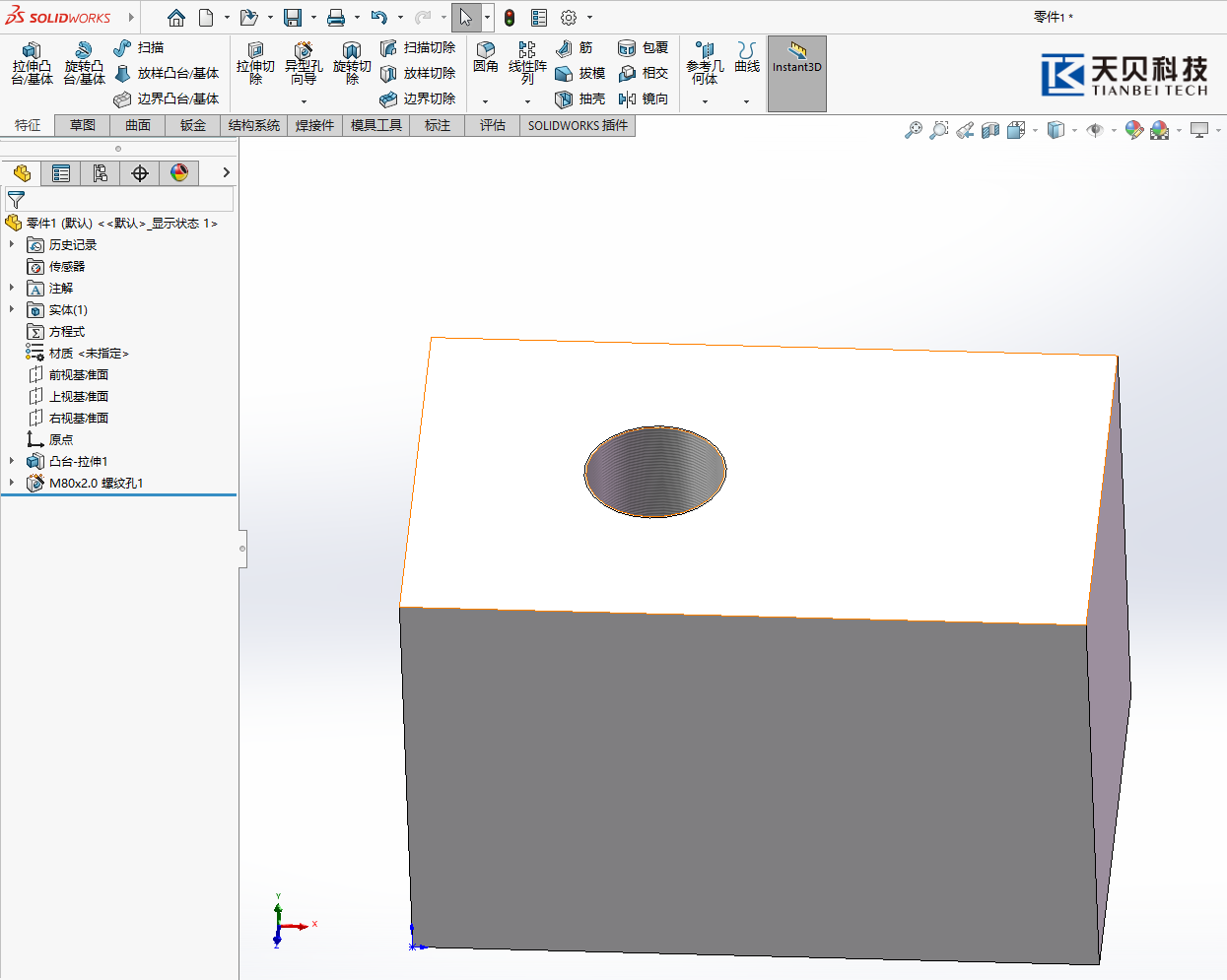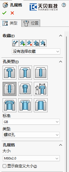 7,打开SOLIDWORKS,打开“异形孔向导”,选择“M80x2”孔规格,生成螺纹孔。