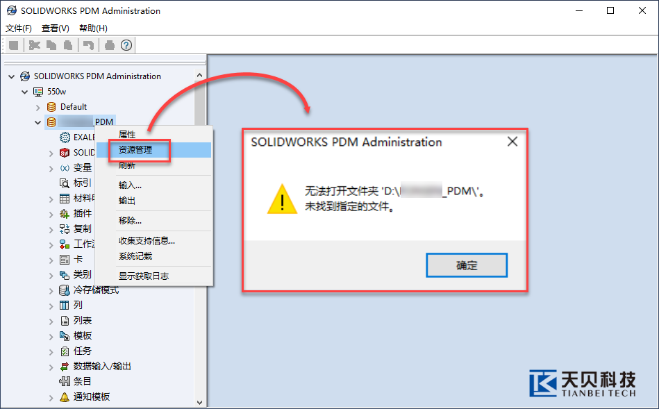 l PDM管理端:访问【资源管理】但提示“无法打开文件夹…未找打指定的文件。”