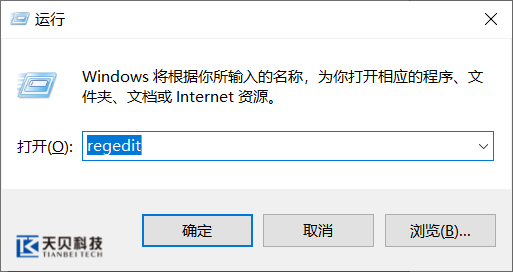 2、按下 Win + R 键,输入 regedit 并回车,打开注册表编辑器。